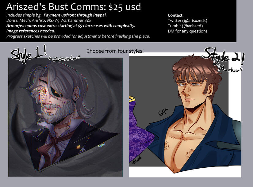 Please DM me on twitter, tumblr, or discord (â›§| Zed |â›§#5658) for any commissions